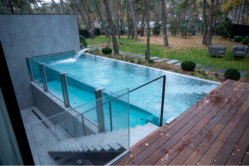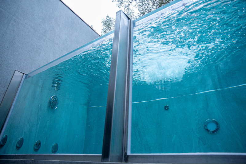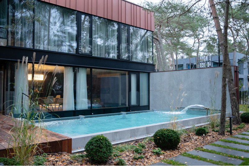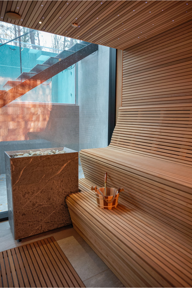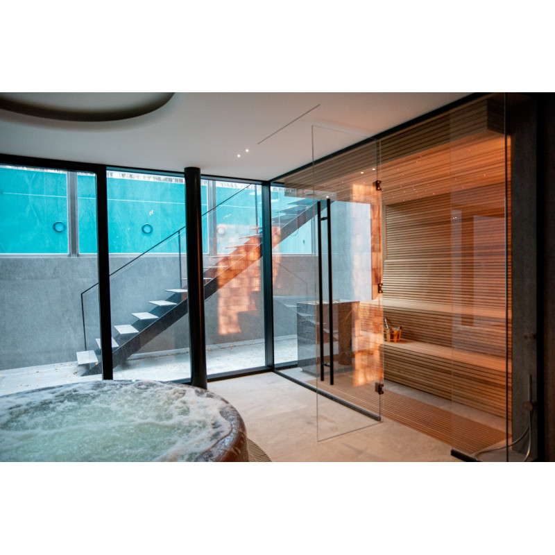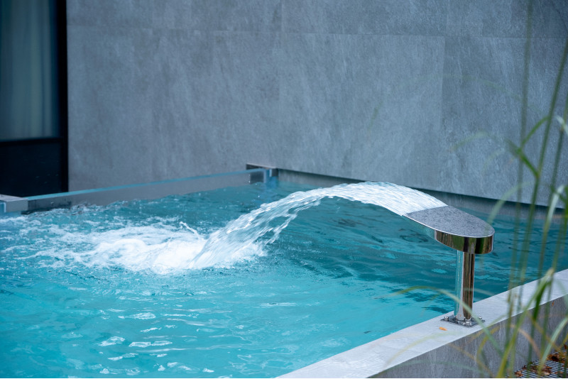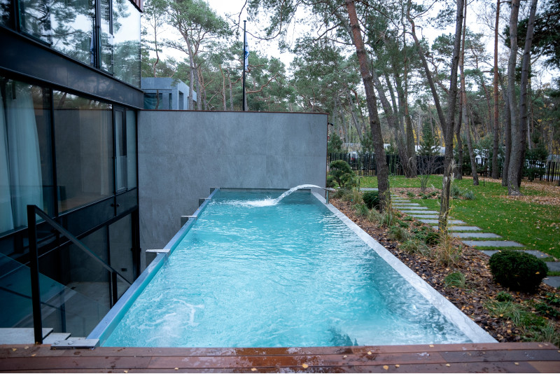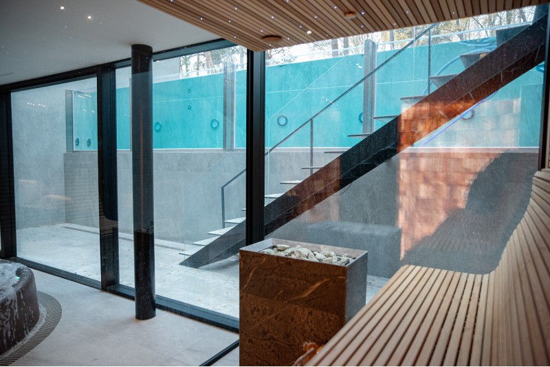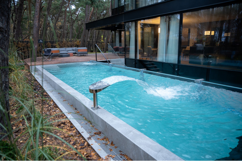 Индивидуален проект на сауна, външен басейн, изливащо устройство и джакузи
