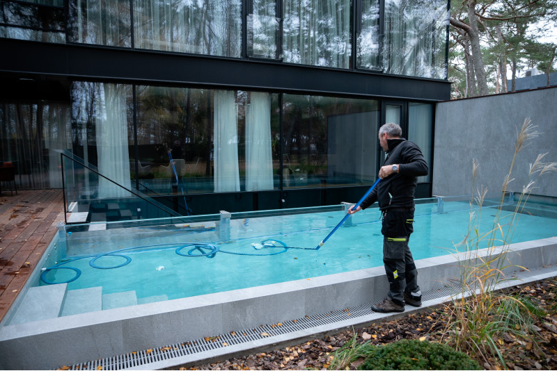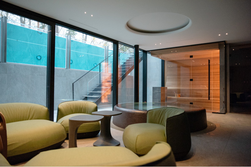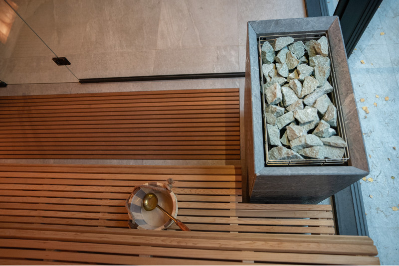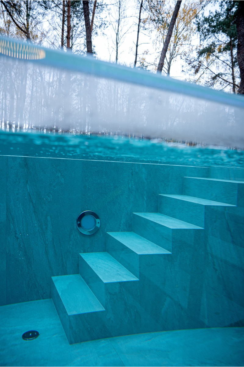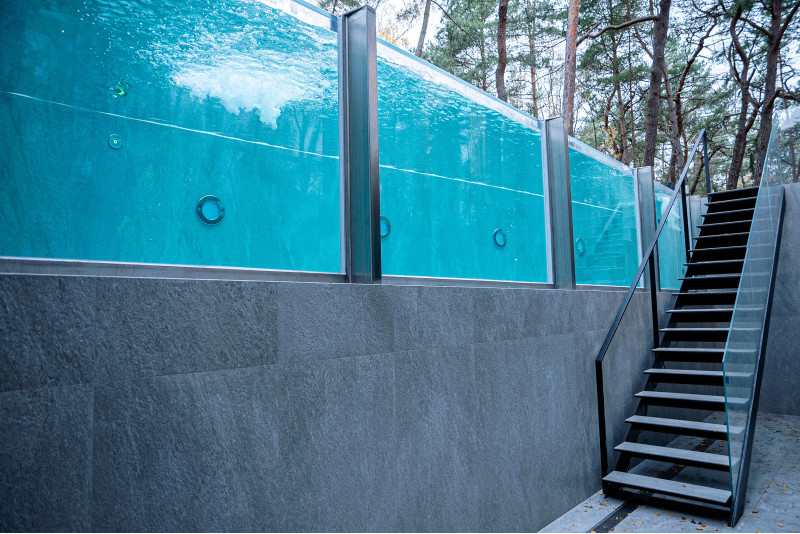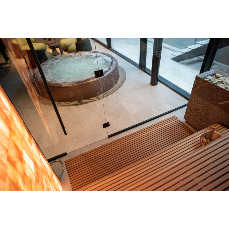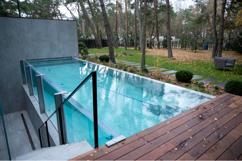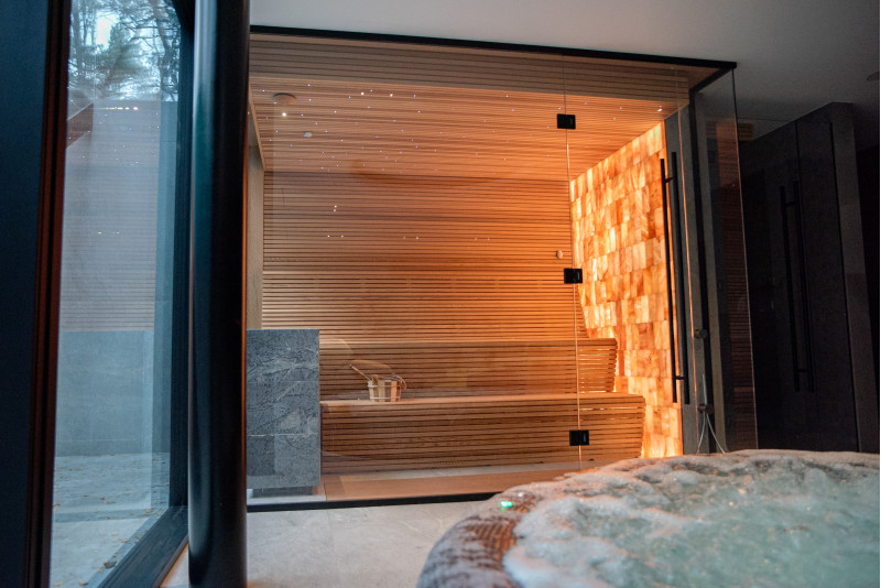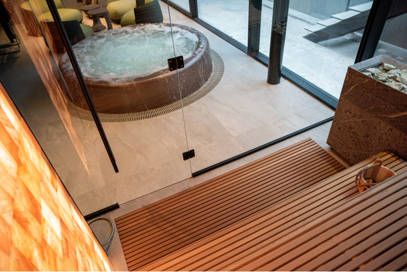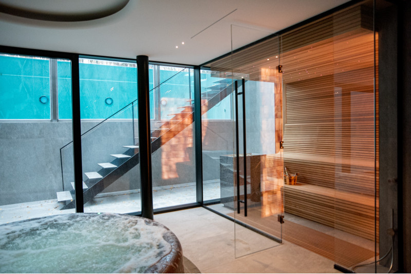 Индивидуален проект на сауна, външен басейн, изливащо устройство и джакузи