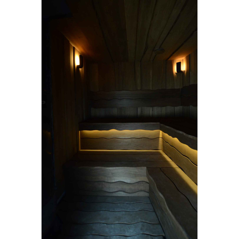 За стенно осветление се избират топли осветителни тела с капаци. Под пейките е монтирано LED осветление.
