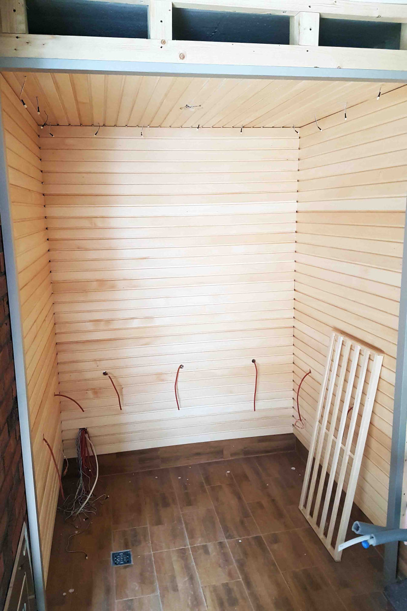 Вътрешната украса на сауната е пейки от липа, стени, тавани и подови решетки. Пейките са импрегнирани със специално парафиново масло. Маслото предпазва дървената повърхност от въздействието на влагата, което прави дървото по-лесно за почистване и поддръжка. Стените са лакирани с лак за водна баня, който предпазва от въздействието на мръсотия, вода и алкали.