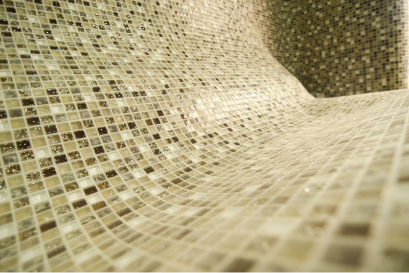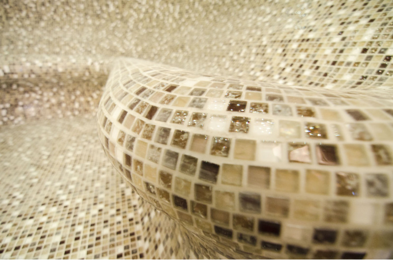 Довършителни работи - стени, пейки, подове украсени с малка мозайка, естествени цветни плочки.