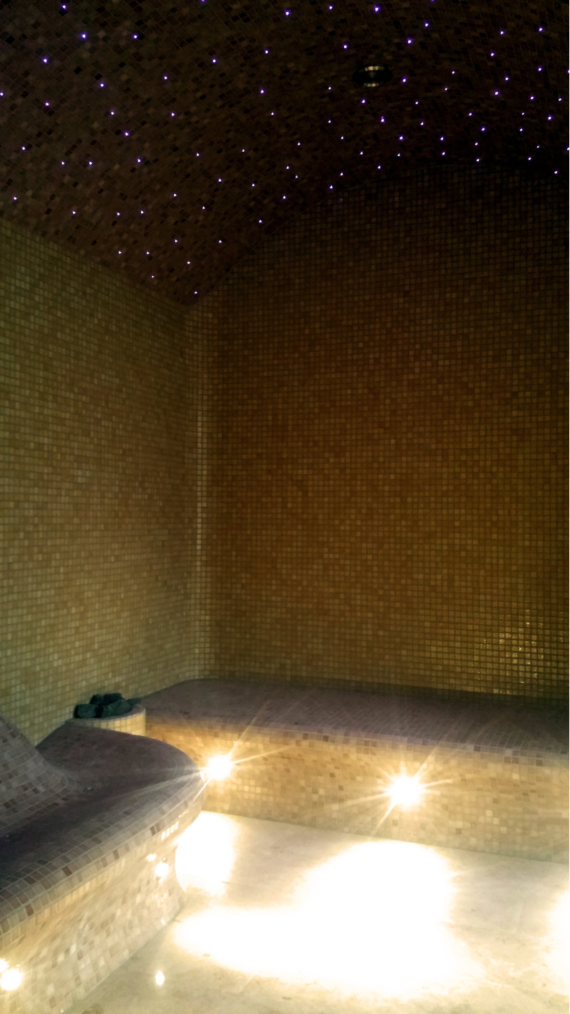Оптична осветителна система за тавана - "звездно небе". Под пейките е предвидено LED осветление за осветяване на пода.