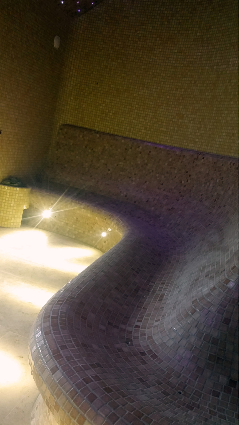 Пейки, стени и тавани за парна сауна са изработени индивидуално от специален екструдиран полистирол.