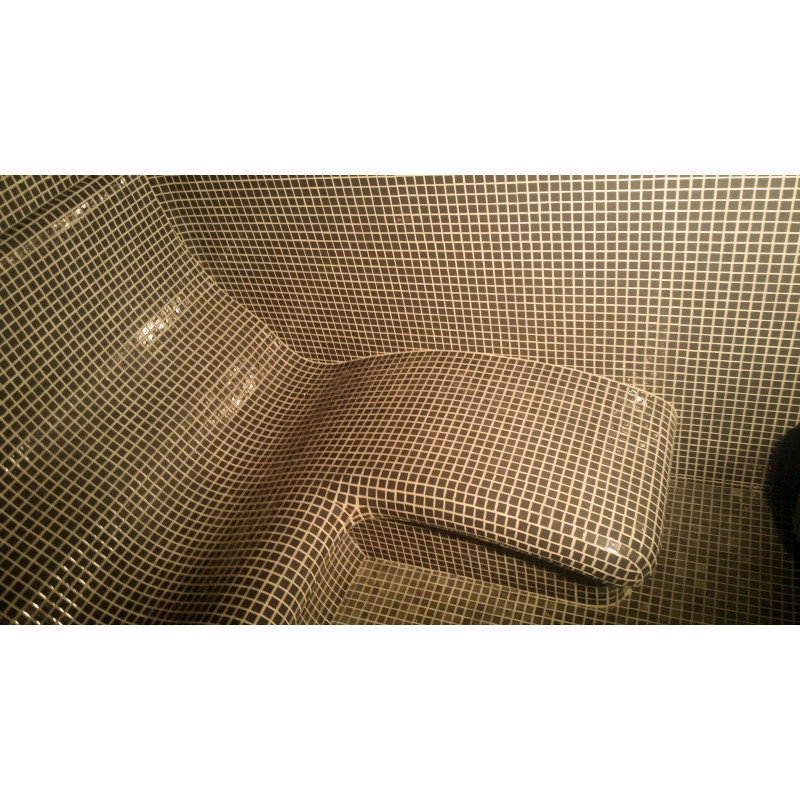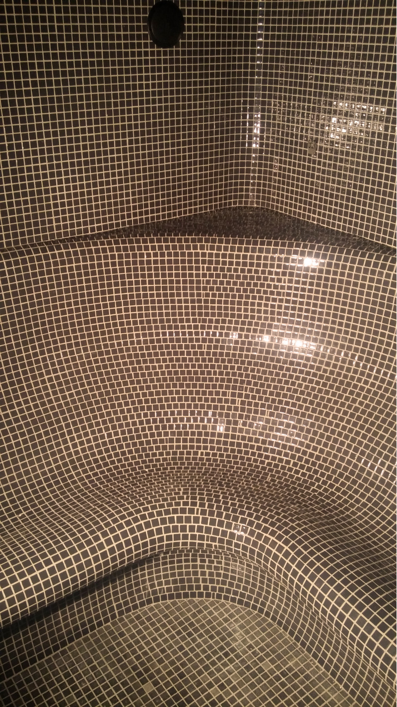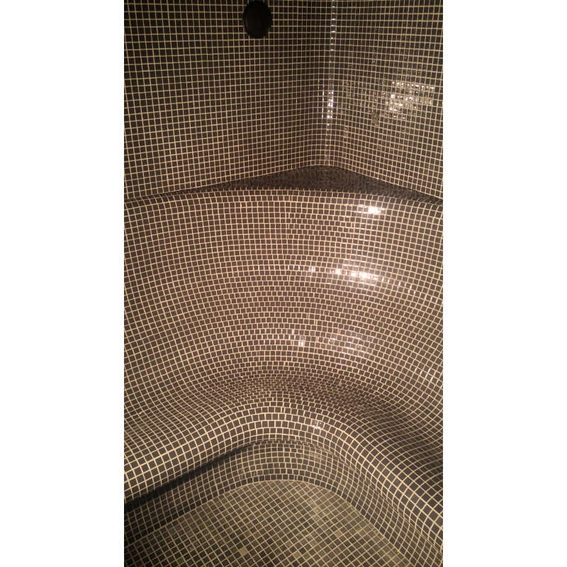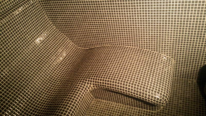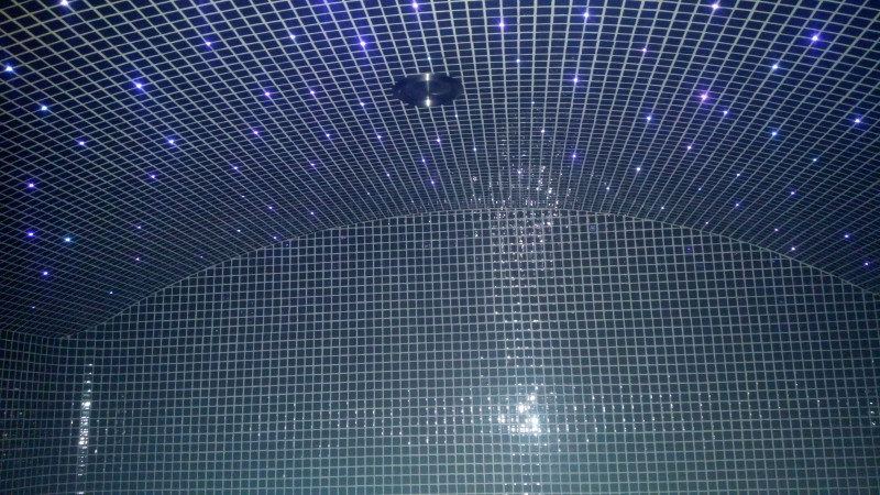 Довършителни работи - цялата сауна е декорирана с натрошени стъклени мозаечни плочки.