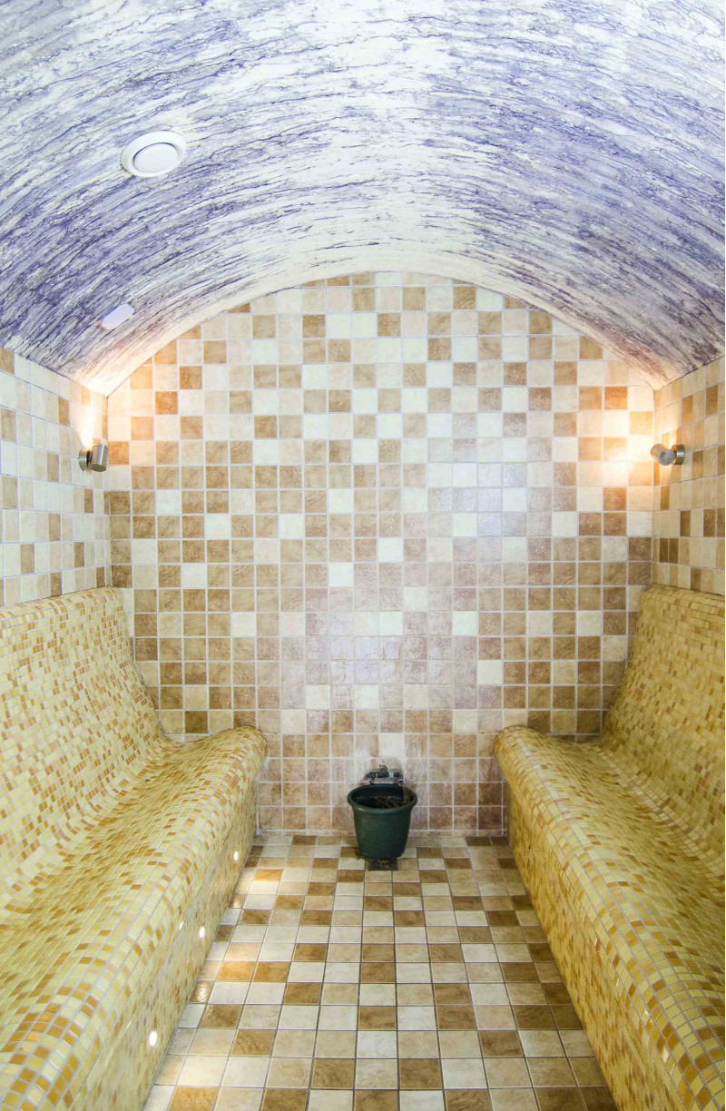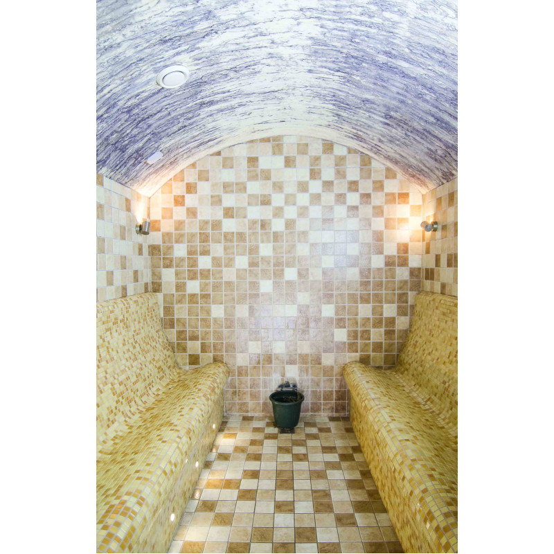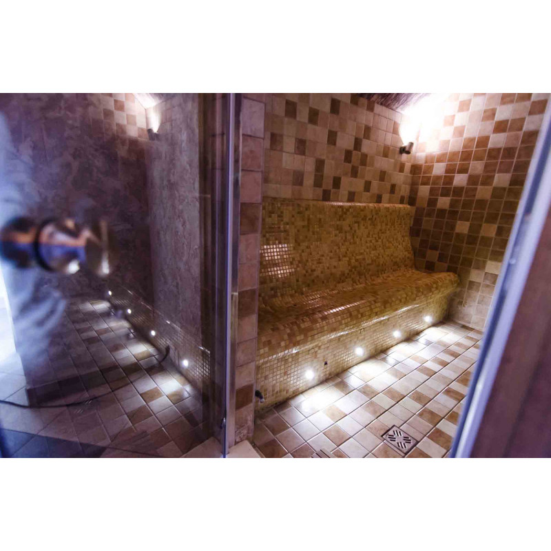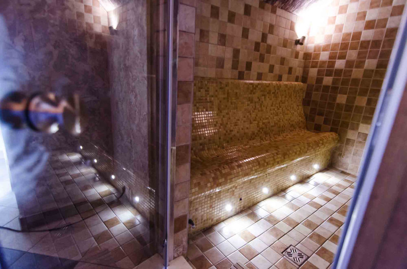 Сменено оборудване - монтиран парогенератор Helo HNST, подходящ както за частни, така и за обществени парни бани. Парогенераторът е оборудван с дигитален контролен панел T1, който се монтира извън парната сауна. T1 - нов дизайн сензорен контролен панел. Дисплеят показва времето, температурата и включване/изключване, с настройките на времето за включване и температурата (23 часа работно време).