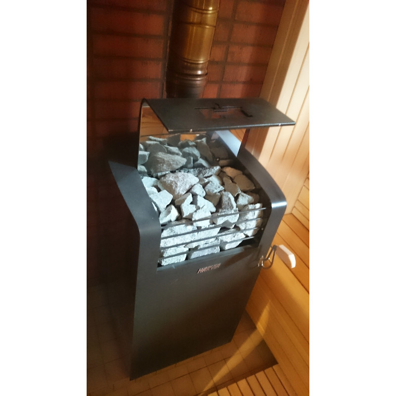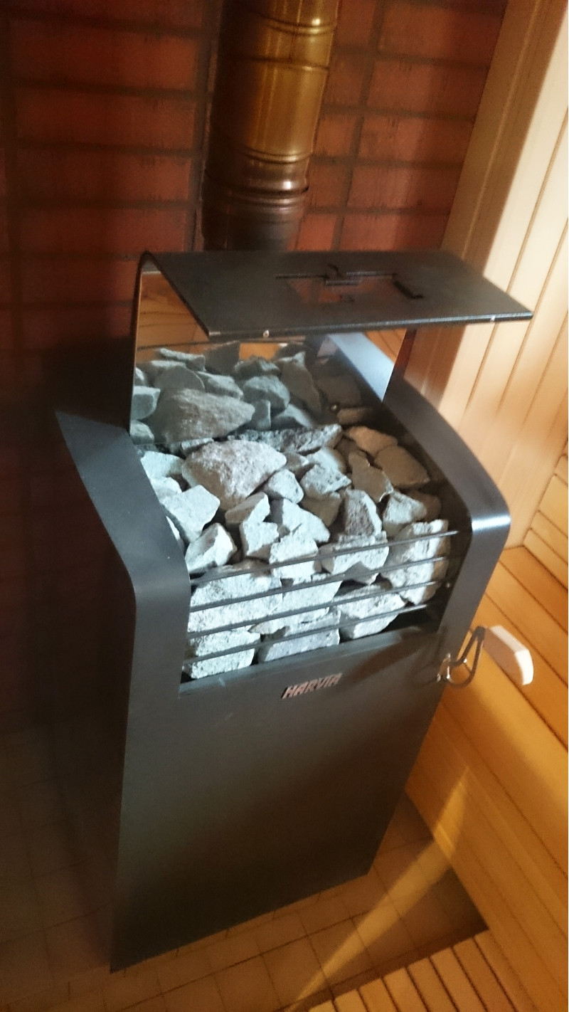 Осигурена е вентилация за осигуряване на правилна циркулация на въздуха в сауната, монтиран е и комин с нагревател. Моделът на нагревателя е от затворен тип, който акумулира топлина и дава много пара. По време на нагряване капакът се затваря, като се излива вода върху камъните - отваря се.