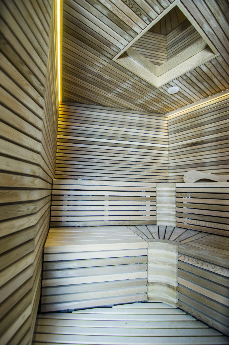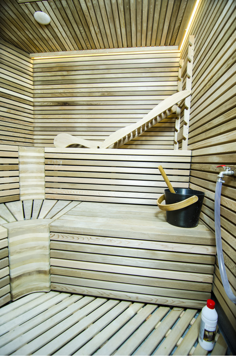 Стените и пейките на сауната са изработени от най-висококачествена кедрова дървесина.