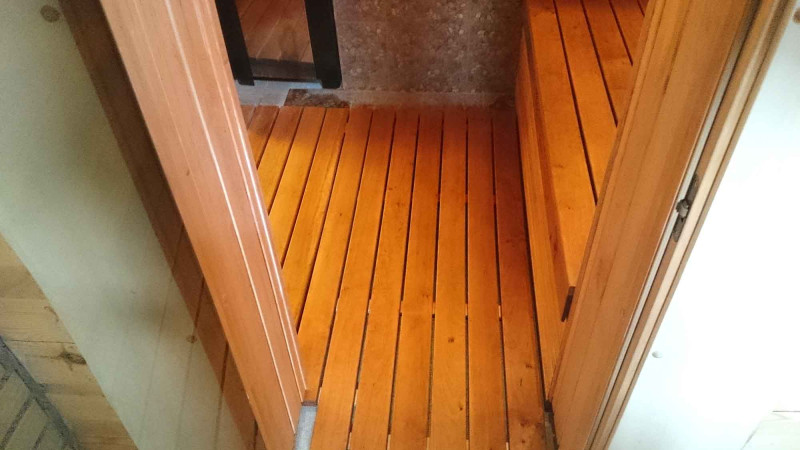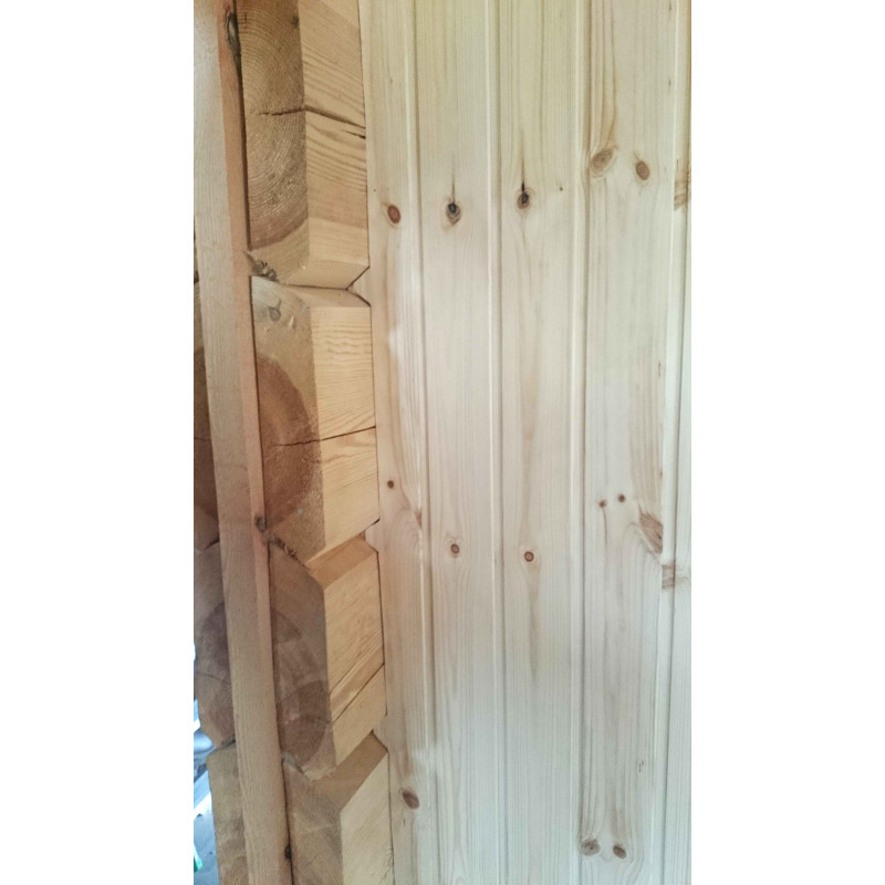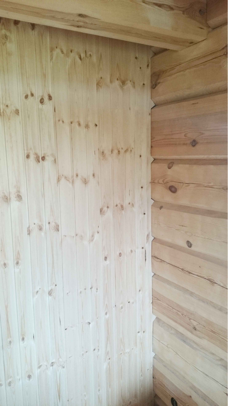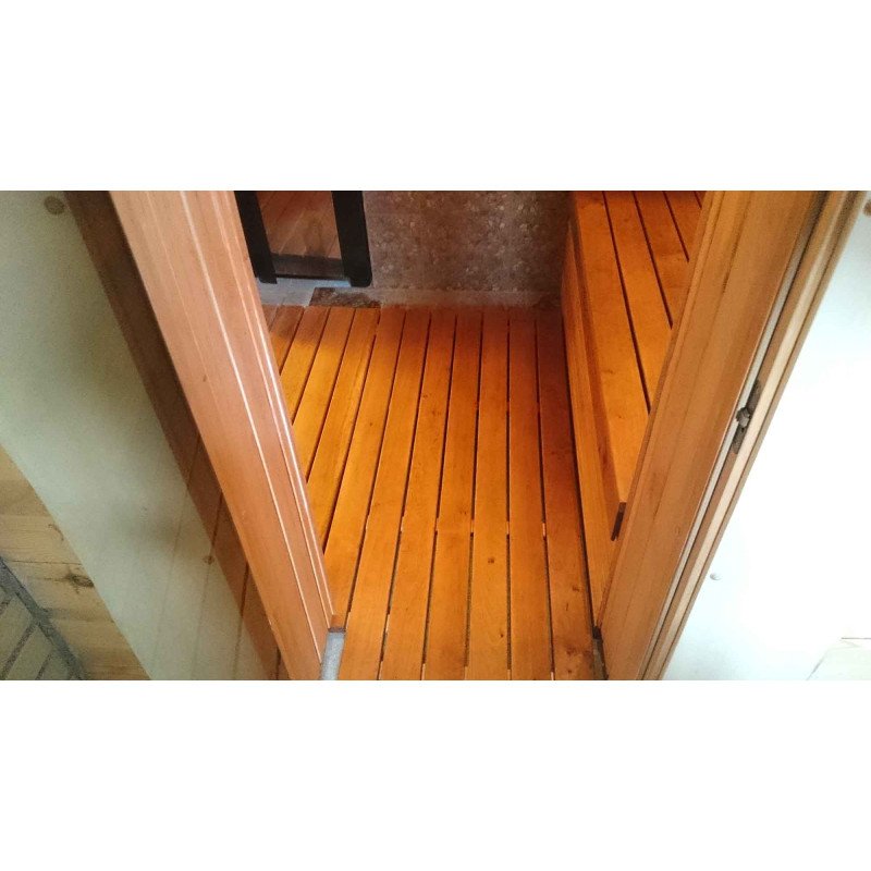 Вътрешна декорация - висококачествен сайдинг от черна елша. Сайдингът от черна елша перфектно понася големи температурни разлики, не се напуква и не се деформира. Отопленият излъчва прекрасна и лека миризма на естествено дърво, което осигурява комфорт при сауни процедури. Черната елша не се нагрява в гореща сауна, така че е невъзможно да изгори при контакт с повърхността.