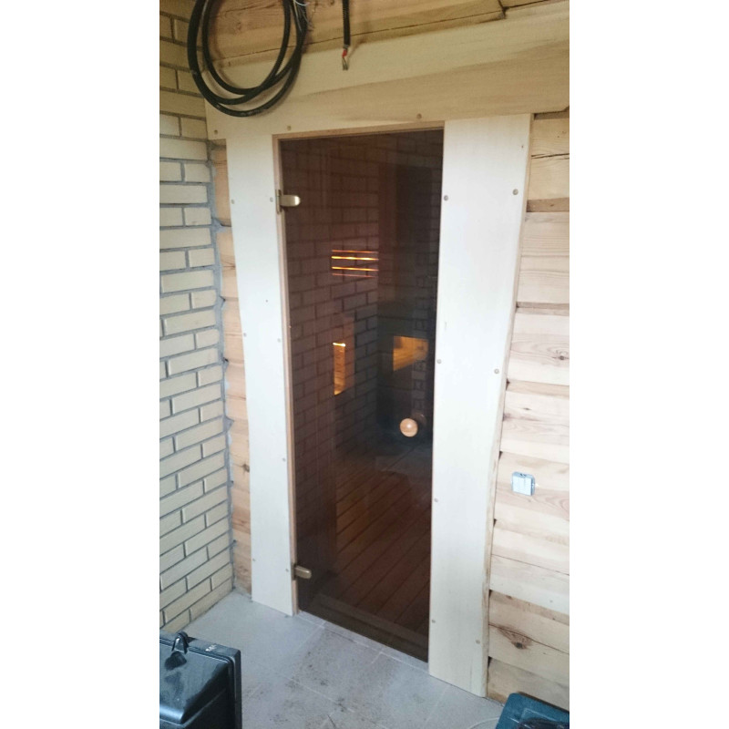 Врати - тонирано закалено стъкло с кръгла дървена дръжка.