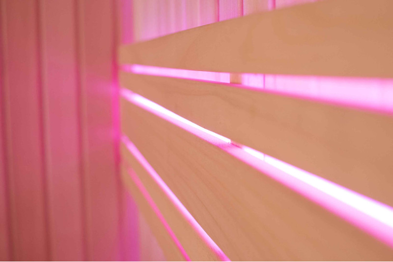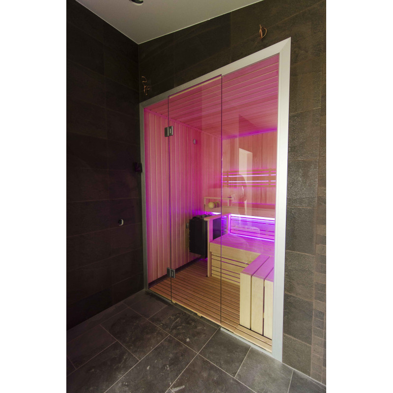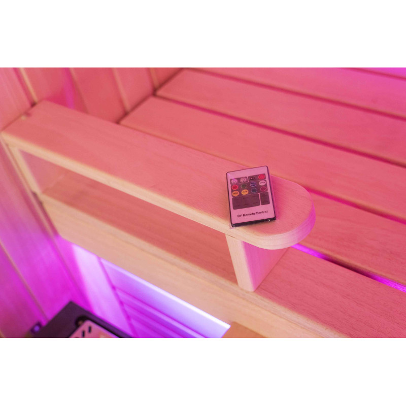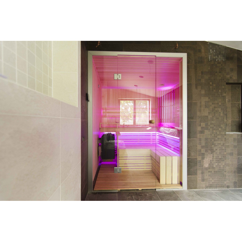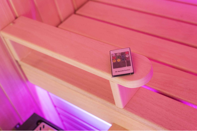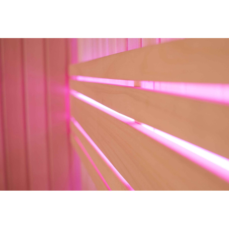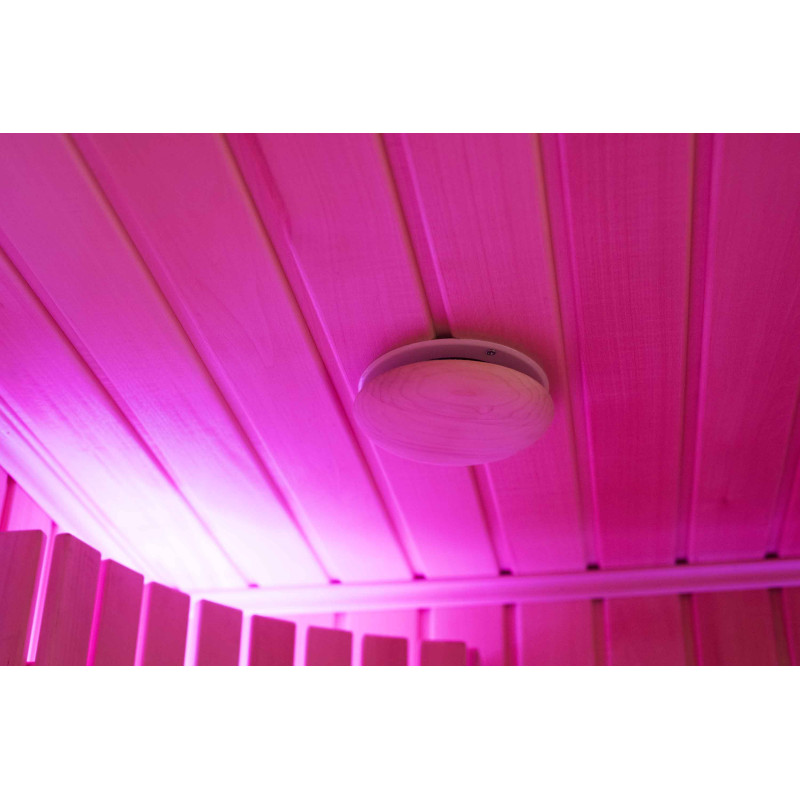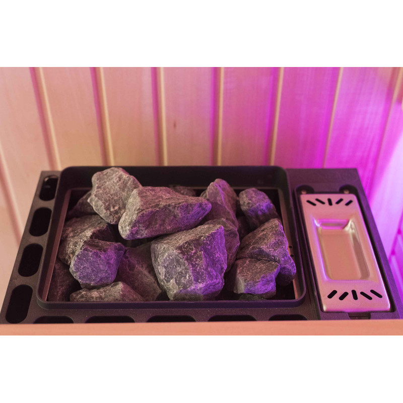 Интериорът на сауната е направен от най-висококачественото дърво от липа, шезлонгите са от дърво абачи - неотопляемо и идеално за сауната.