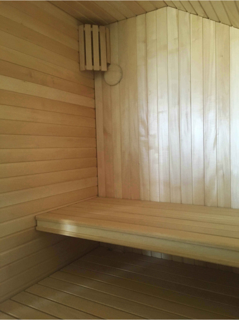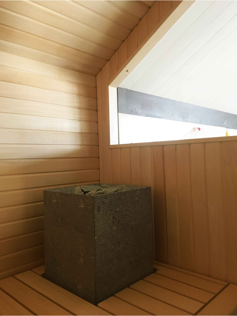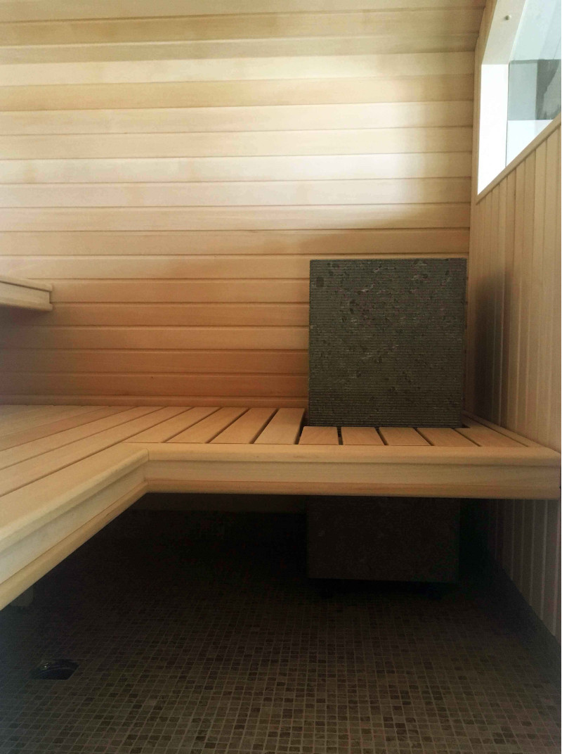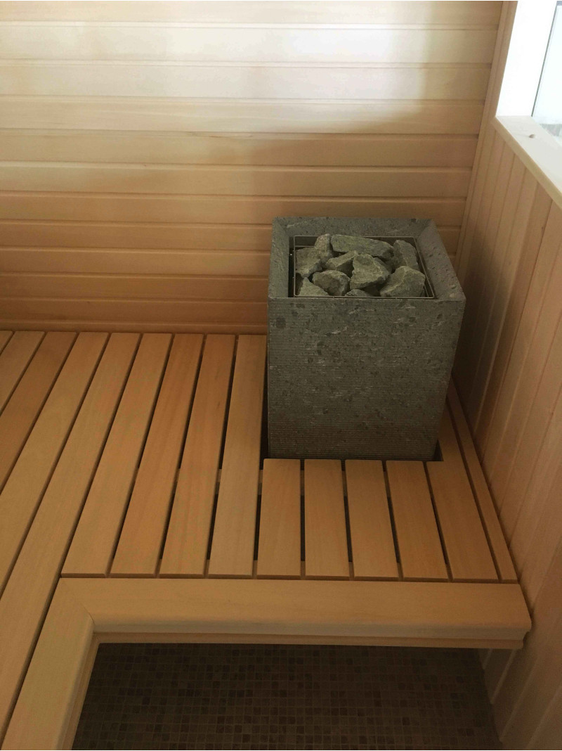 Стените и таваните на сауната са от липа. Сайдингът от липа дава на сауната повече светлина и излъчва приятна миризма на дърво. За пейките, облегалките и оградата около нагревателя е избрана висококачествена дървена ламперия абачи. Това меко и неотопляемо дърво е чудесен избор за пейки, опори, където дървото докосва кожата, без да я изгори. Това гарантира комфорт и страхотна почивка в сауната. Пейките, подпорите и стените са лакирани, напълно подготвени за дълготрайна употреба.