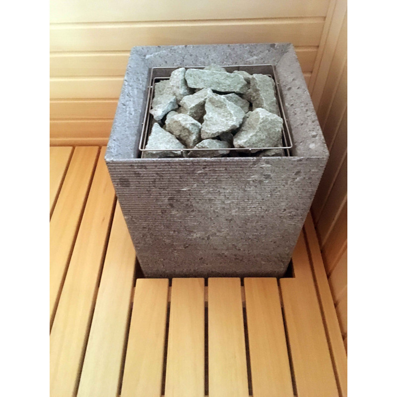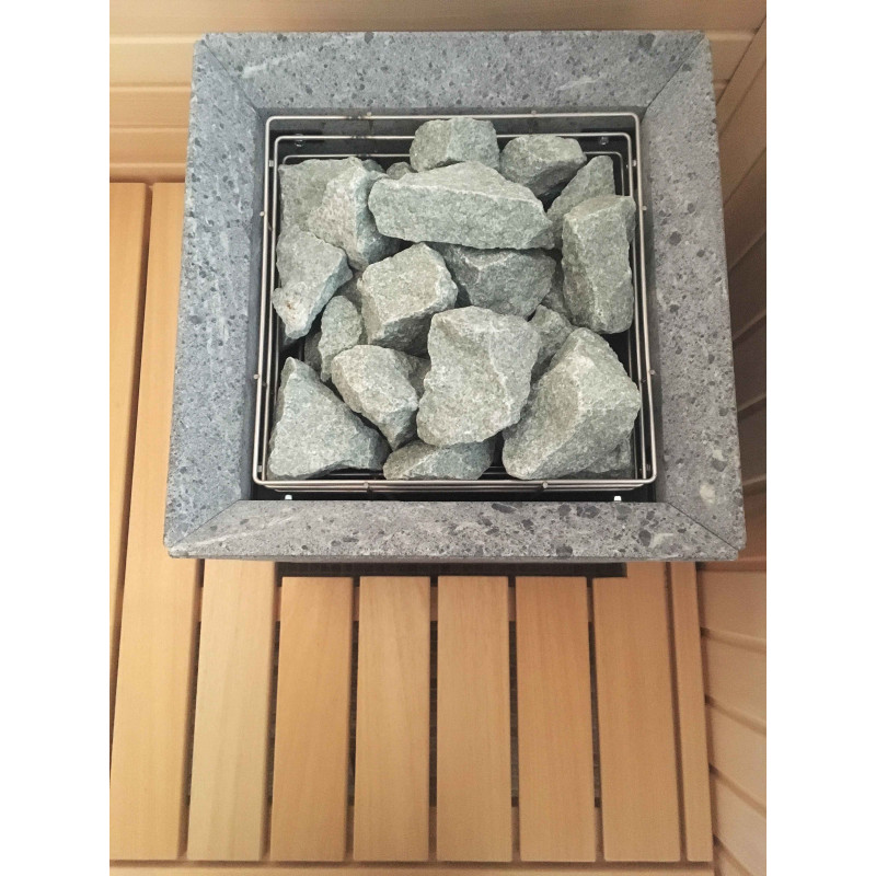 Електрически нагревател Tulikivi Tuisku с покритие сапунен камък. Управлява се с дистанционно управление. Пълен с голямо количество смес от оливин диабаз и жадеитни камъни. Поради късите безопасни разстояния до запалими повърхности и силно ненагряващата повърхност на нагревателя, това е добър избор за семейства с деца и за интегриране на нагревателя в пейки. Енергията, освободена от жадеит, има лечебни сили за много болести. Лечебните свойства на нагрятия жадеит се подобряват. Изливането на камъка с вода разпространява приятна миризма на чиста среда в сауната, което улеснява дишането.