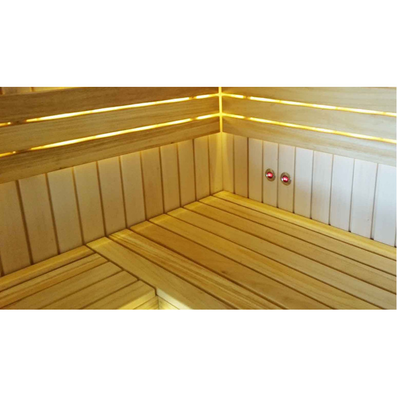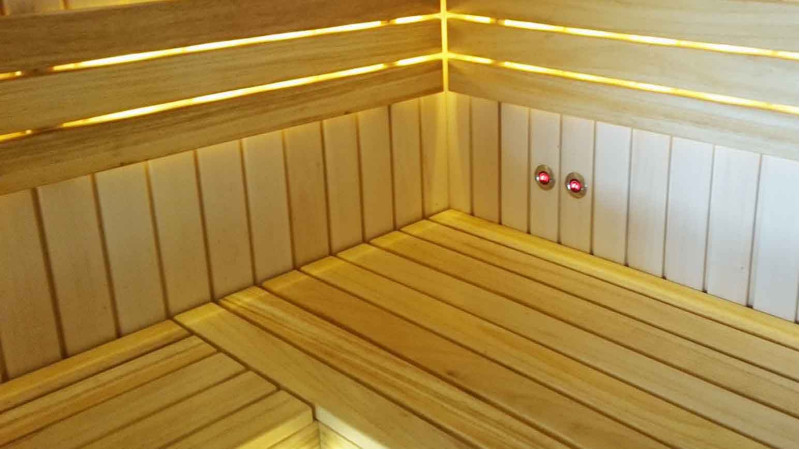 Пейките са изработени от черна елша. Черната елша не се нагрява в гореща сауна, така че е невъзможно да изгори при контакт с повърхността. Поради тази причина черната елша е идеална за пейки за сауна.