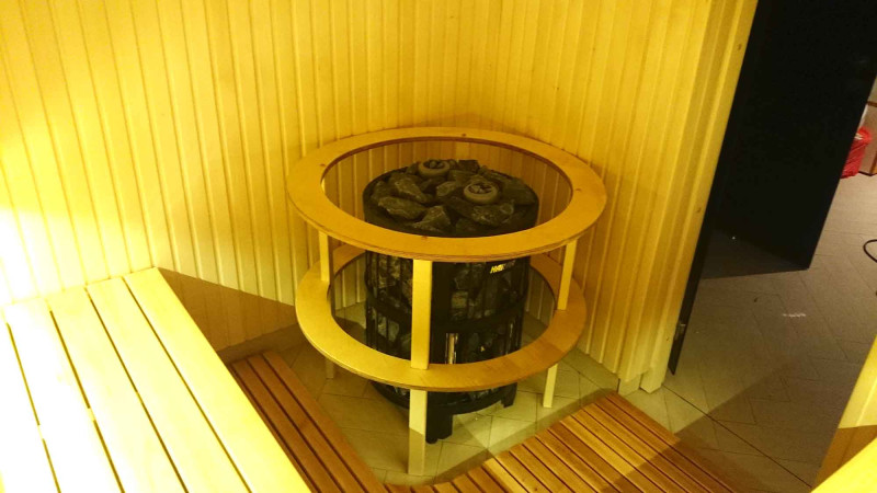 Интериорни дървени детайли - висококачествено африканска дървесина абачи. Това дърво загрява най-малко от всички видове дърва, така че не гори при докосване, безопасно и приятно е да се наслаждавате на сауна на пейки от абачи. Дърво импрегнирано, омаслено, лакирано - готово за употреба при високи температури.