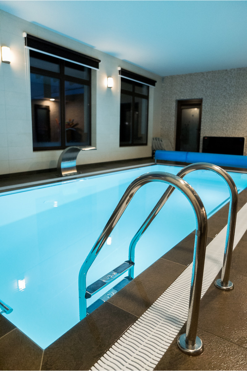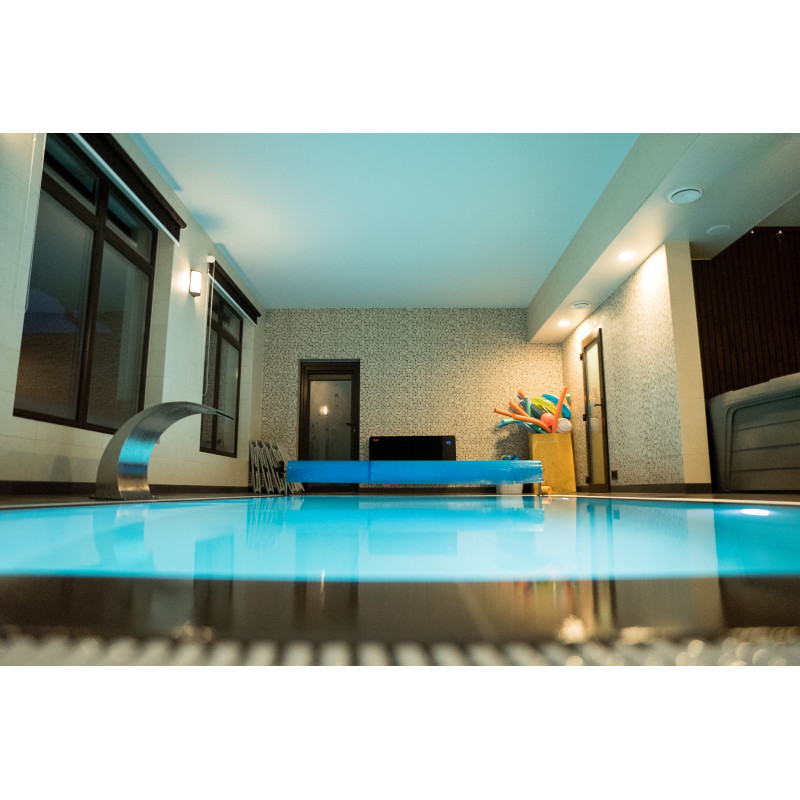 Просторният басейн е оборудван с плувно противотечение и водна каскада. Басейнът е страхотно забавление за цялото семейство.