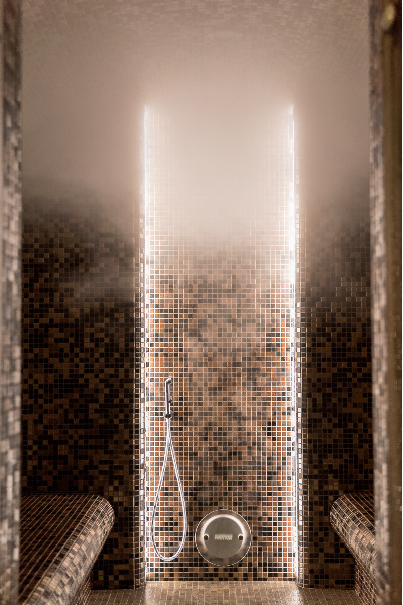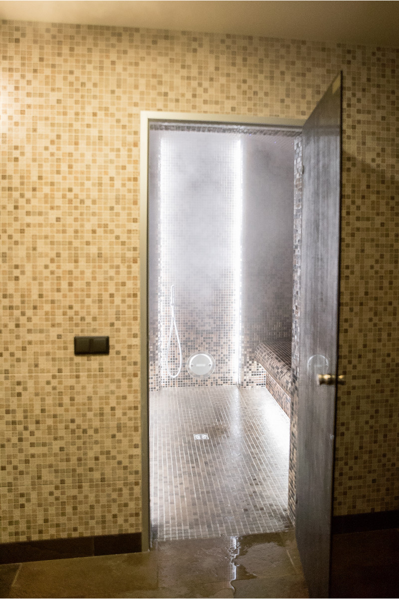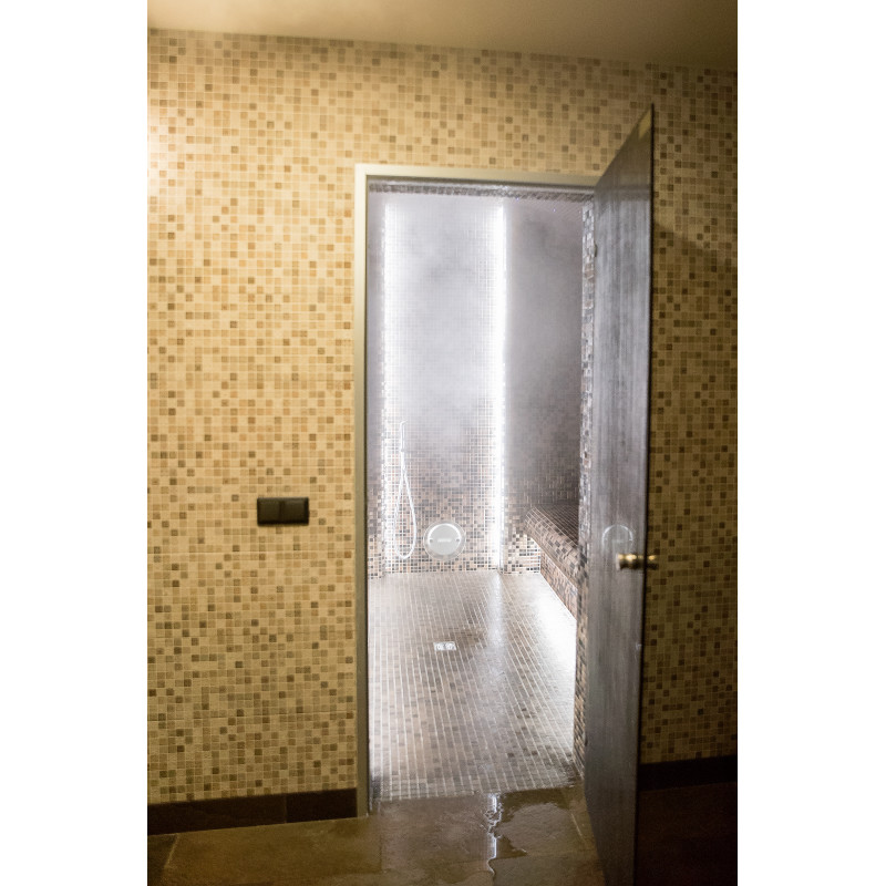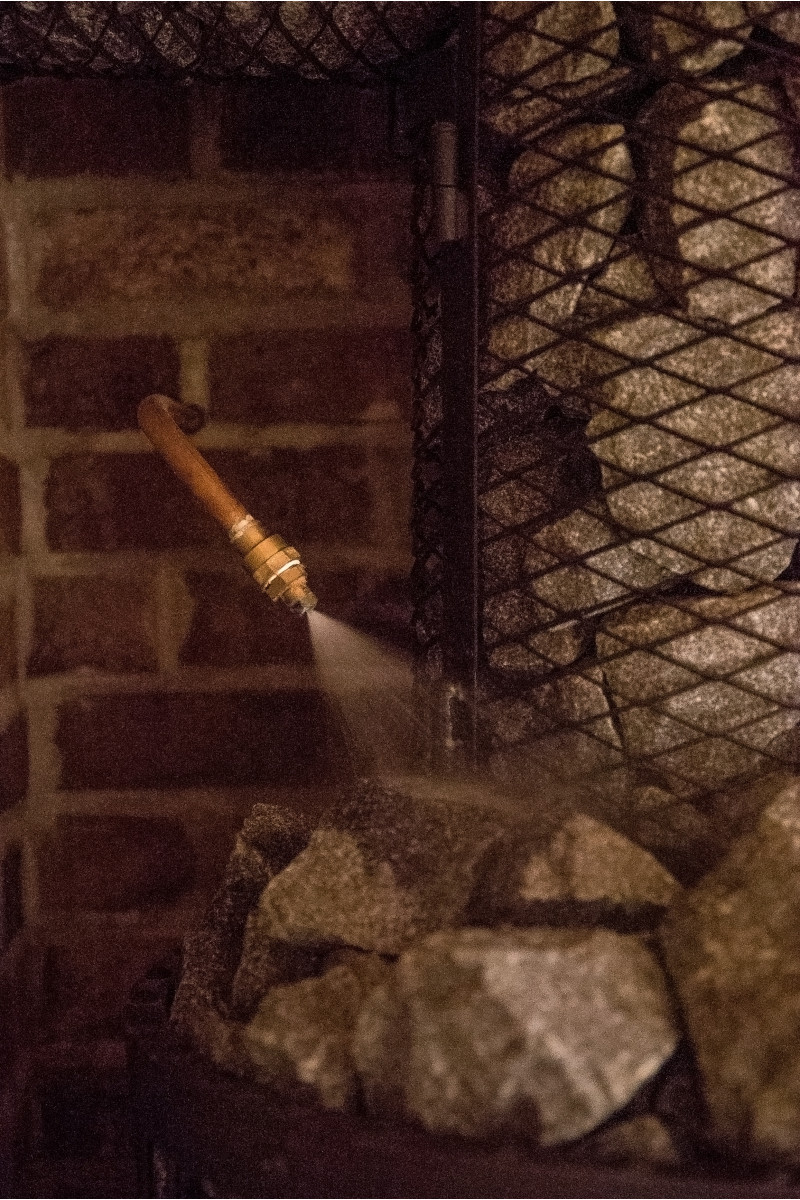 Има автоматизирана система за пълнене с вода върху камъните и автоматизирана система за ароматизиране.