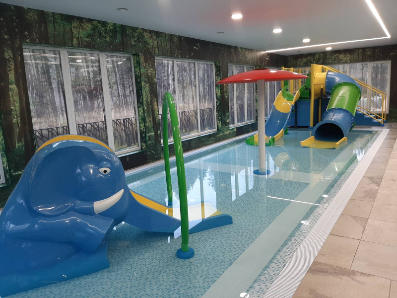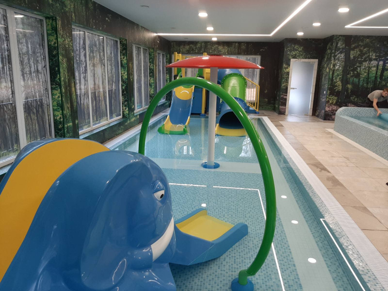 - Два детски басейна с пързалки.