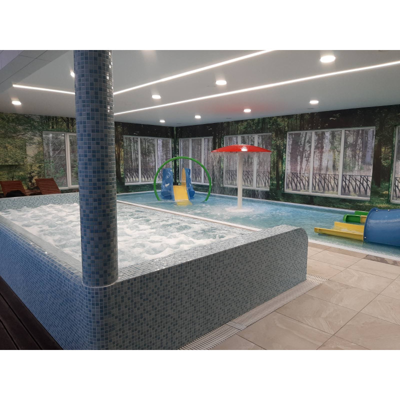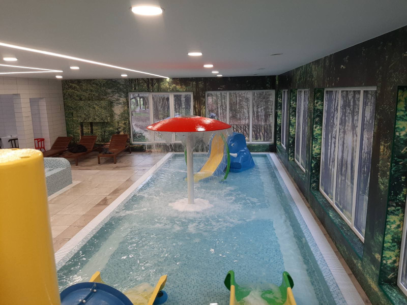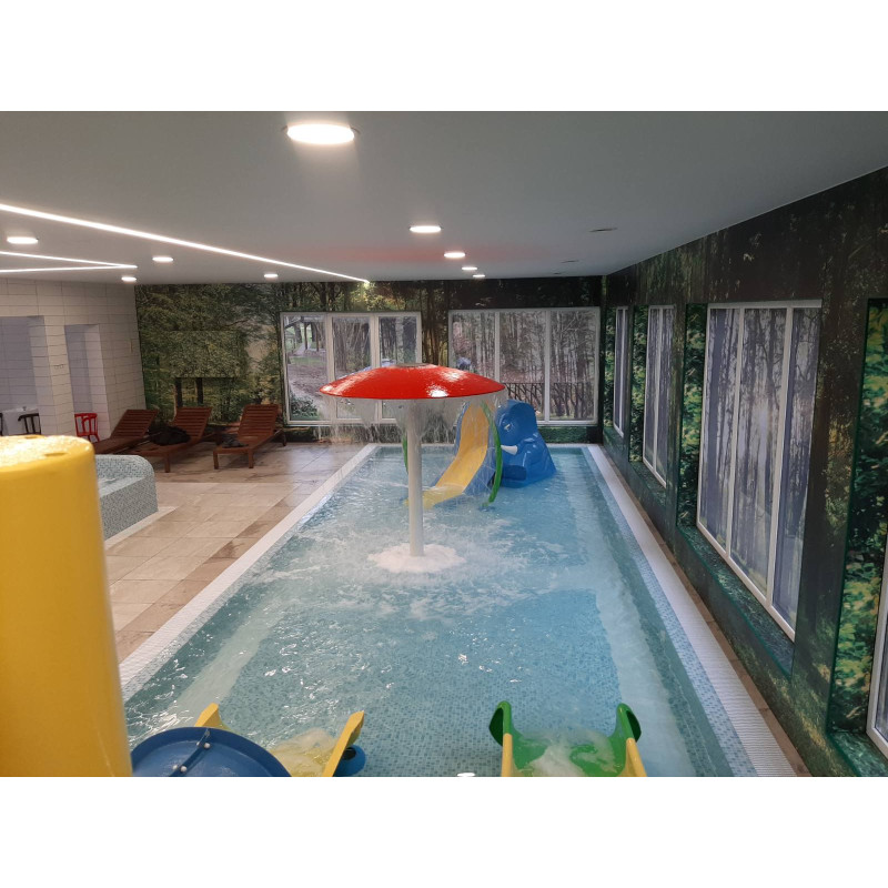 - Плувен басейн (6м дължина) с каскади, подводни гейзери.
