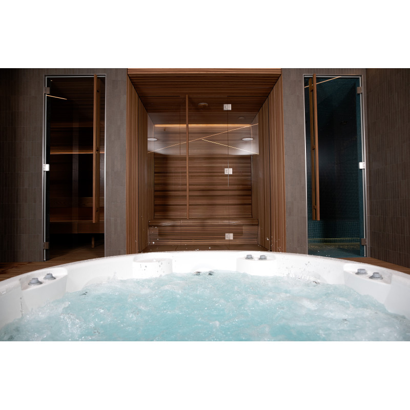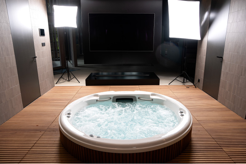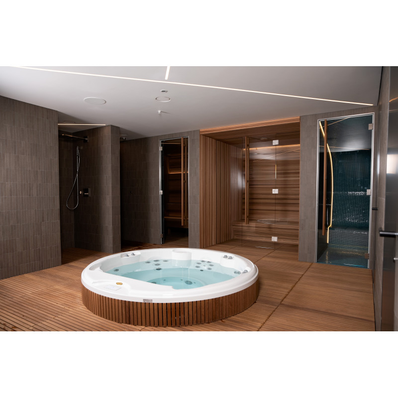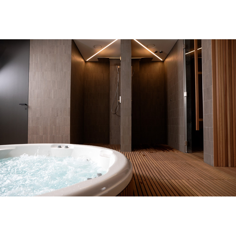 За този проект беше избран хидромасажен басейн от оригиналния производител "Jacuzzi" , като всички процедури по свързване, пускане в експлоатация и тестване бяха извършени в пълно съответствие с техническите стандарти. Този басейн е символ на комфорт и надеждност, осигуряващ първокласно релаксиращо изживяване.