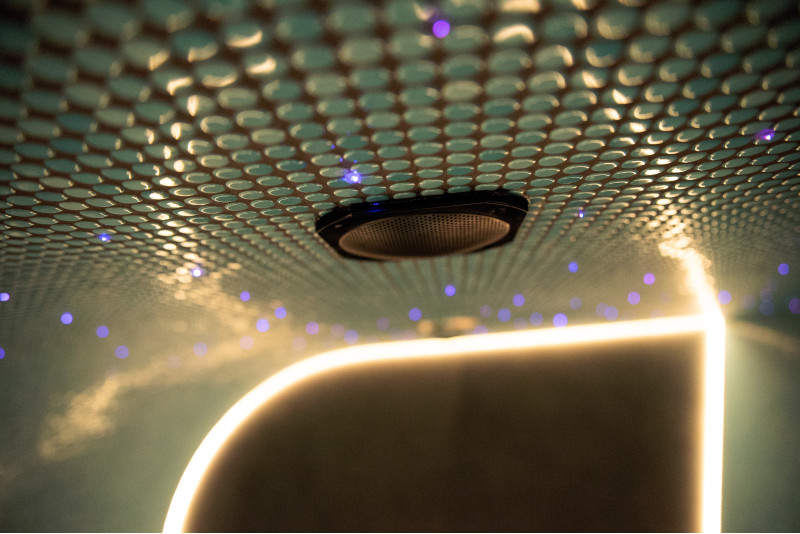 Уникална атмосфера се създава от оптичната система „Звездно небе“ и LED осветлението с променящи се цветове. Допълнително LED осветление е инсталирано под пейките и по задната стена;