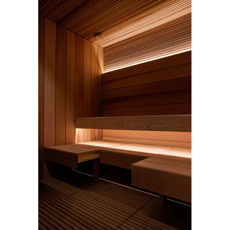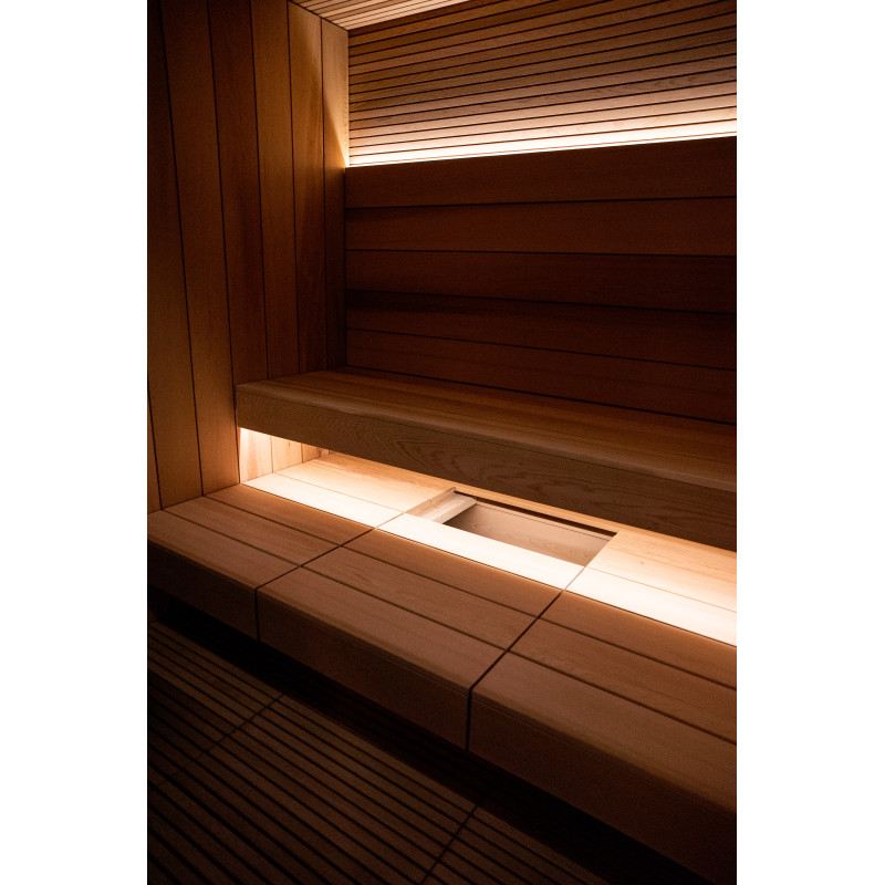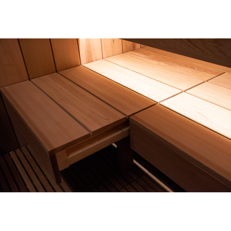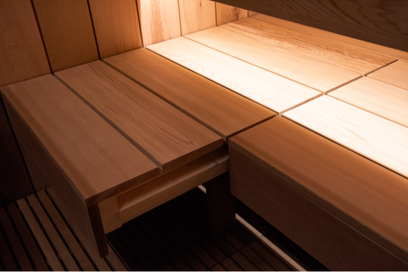 Монтирани инфрачервени нагреватели EOS и карбонови нагреватели Harvia под пейките;