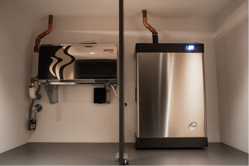 За сауните е инсталирана автономна вентилационна система – рекуператорът Salda Smarty 2X V 1.1 с интелигентен контролер осигурява оптимален микроклимат и енергийна ефективност.