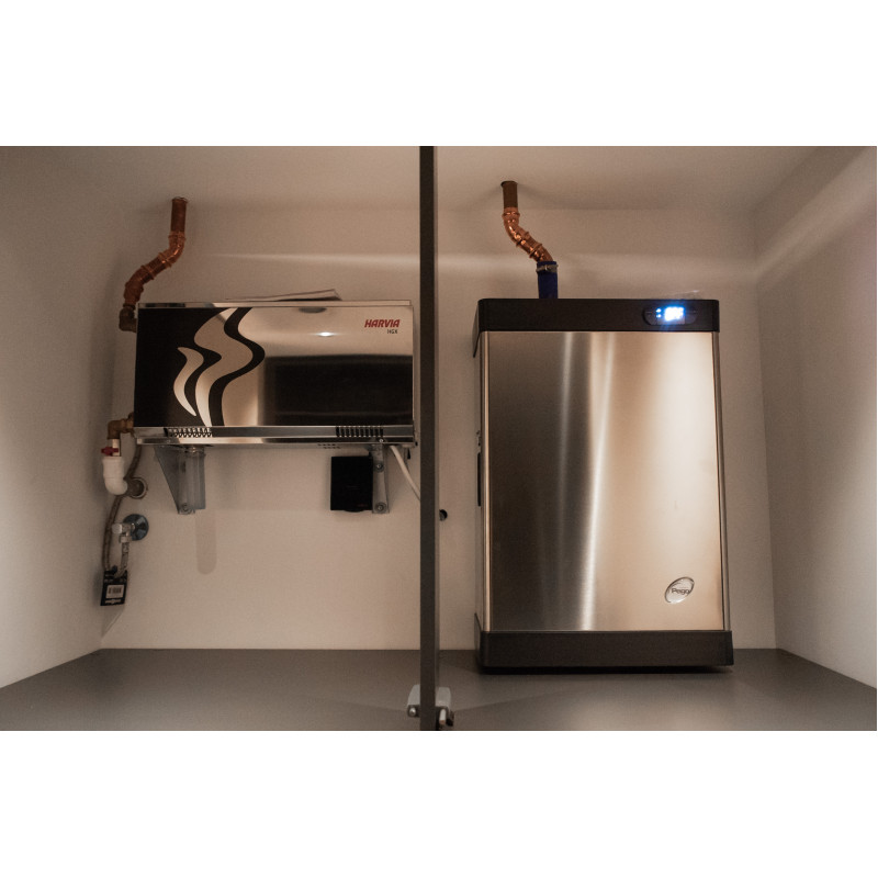 Парна дюза Harvia ZG-520 и парогенератор PEGO ES12N (9kW), управлявани чрез контролен панел FCU 5000 с температурен сензор;