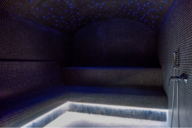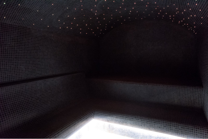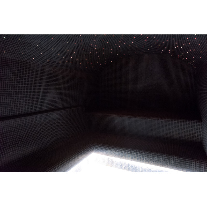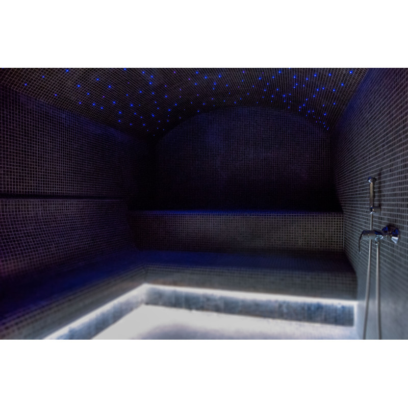 Под пейките - устойчиво на влага и температура LED осветление, осветяващо пода. За осветяване на сводестия таван е избрана оптична система за осветление "Звездно небе", чиито цветове могат лесно и бързо да се сменят с контролния панел.
