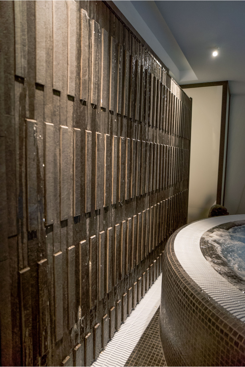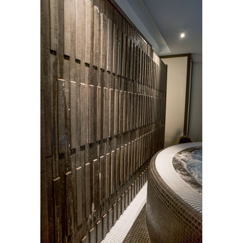 Басейнът е ограден от стена с течаща вода. Инсталирани са системи за събиране на вода, течове, филтриране. Падащата, капеща вода създава тропически екзотичен стил в СПА центъра. Атмосферата, създадена от Изтока, ви позволява да изпитате изключителна почивка.