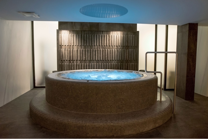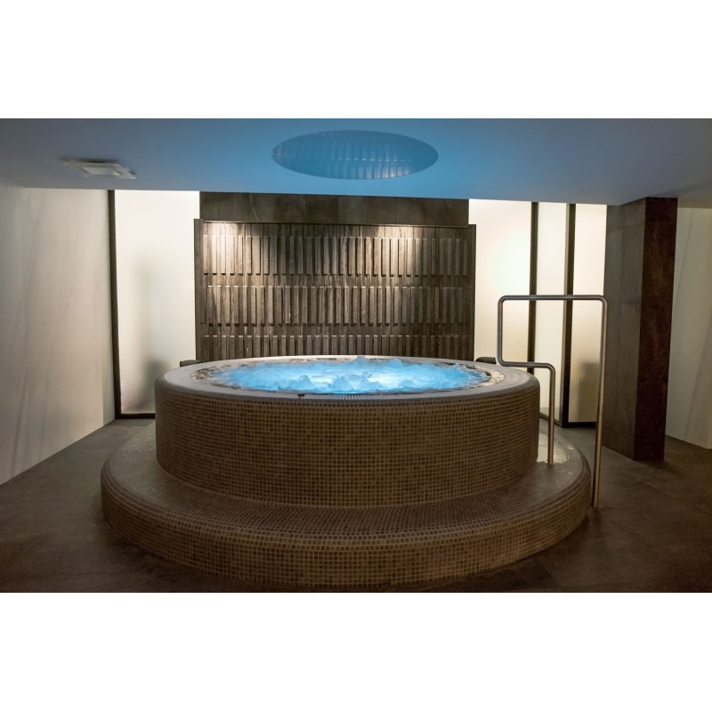 Има просторен хидромасажен басейн, чиито форми са от пенополистирол по индивидуална поръчка. Басейнът е покрит с малки мозаечни плочки, които пасват на интериора в неутрални цветове. Има стъпало около басейна, парапет от неръждаема стомана за лесен и безопасен достъп до басейна.