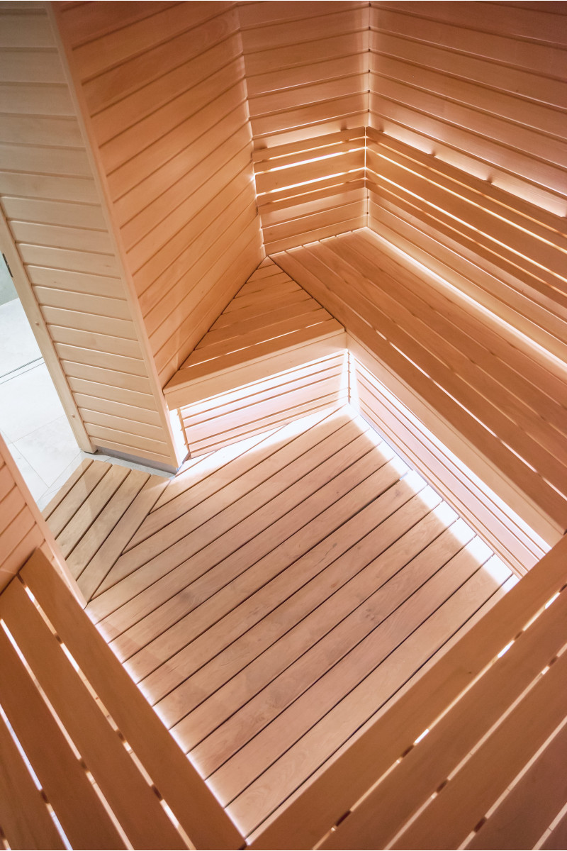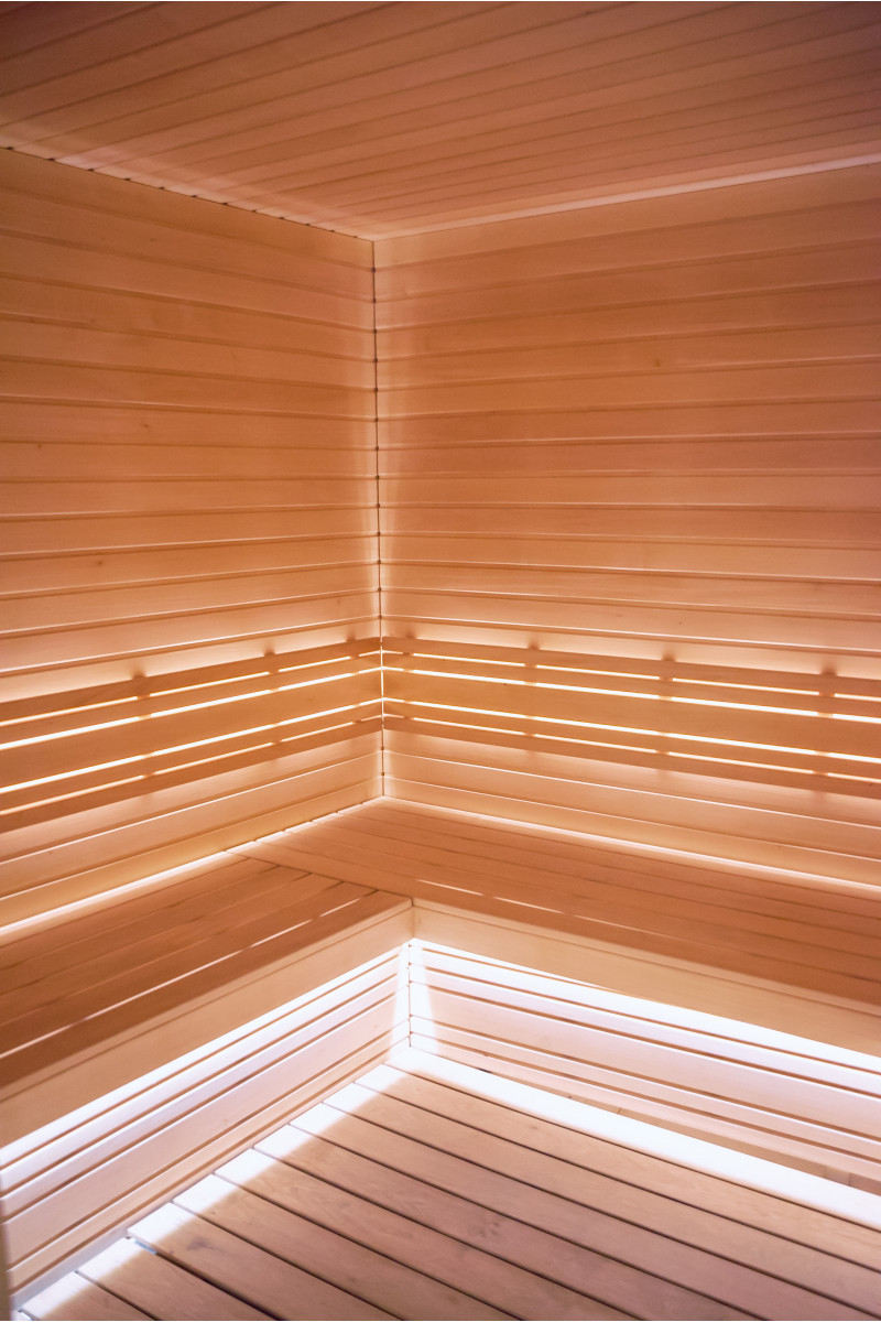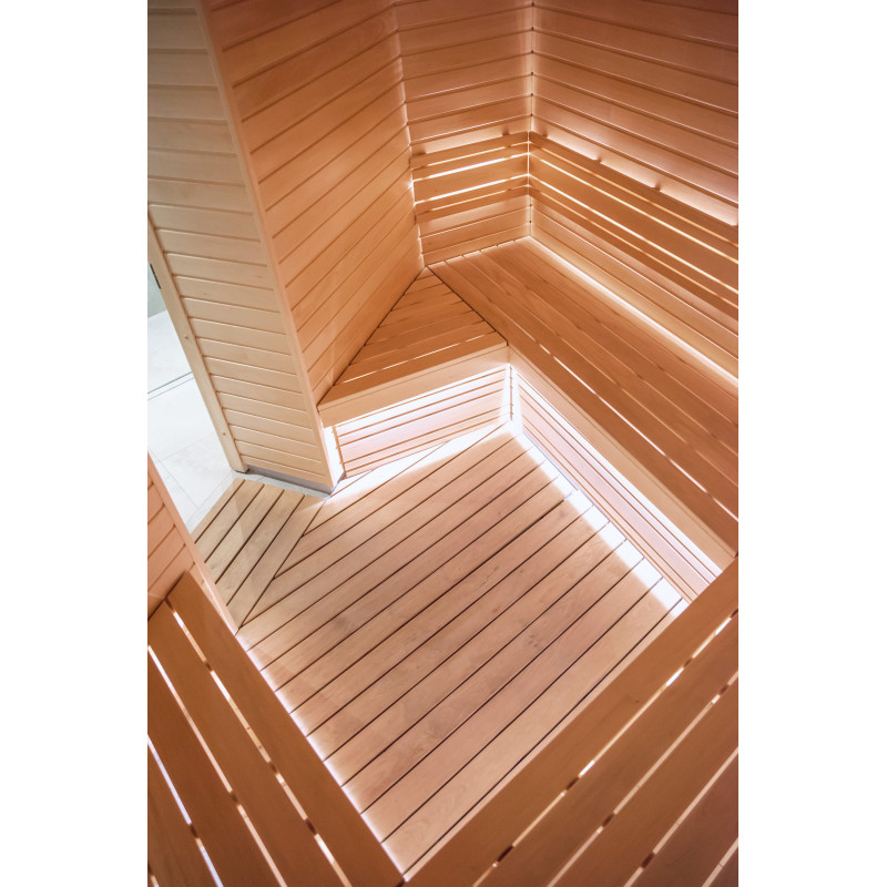 Липа тип А е използвана за легла за сауна, опори за гърба, таван на сауна и стенни панели. Подовата решетка е от черна елша.