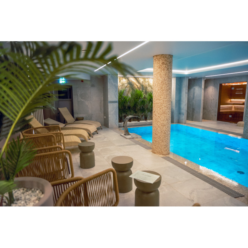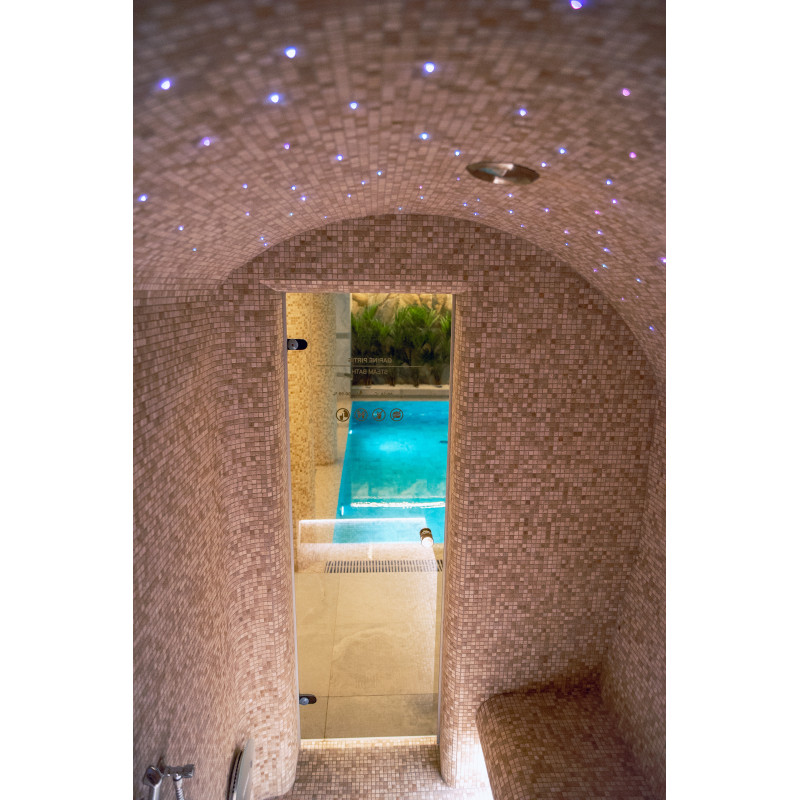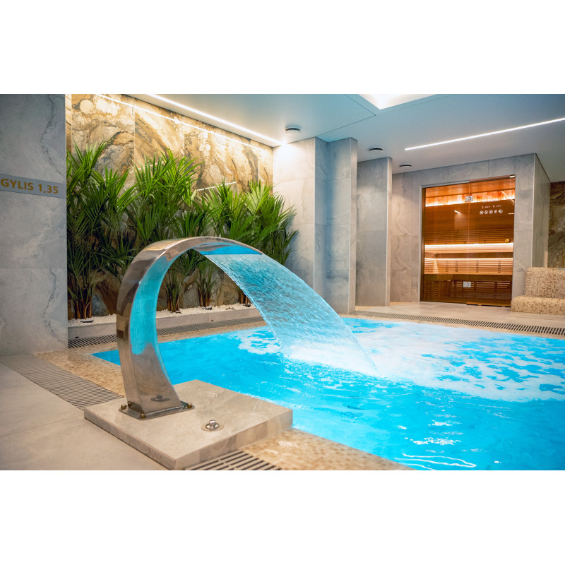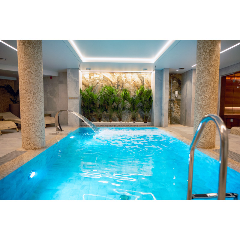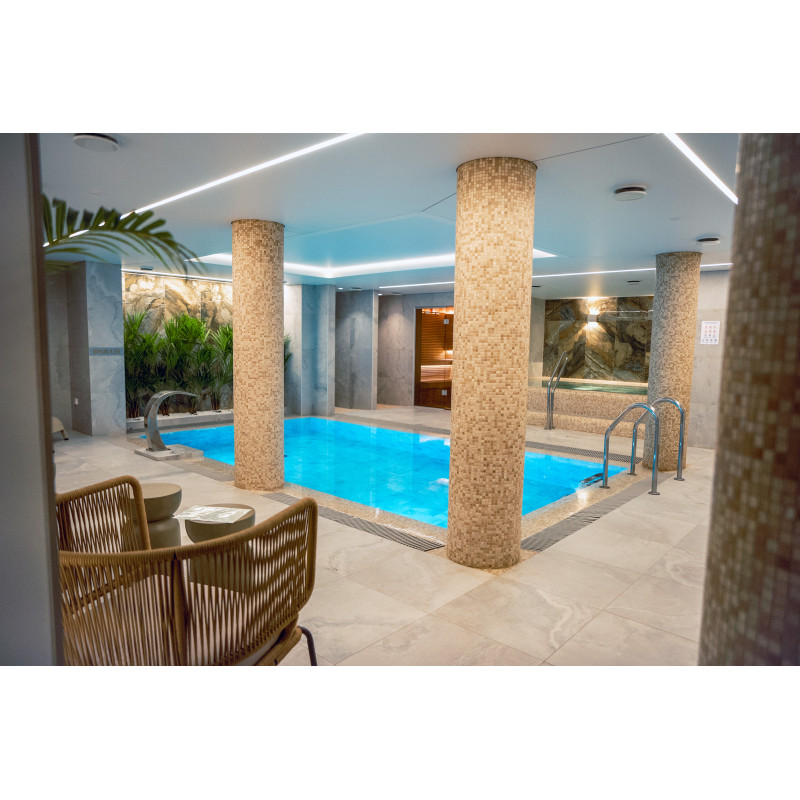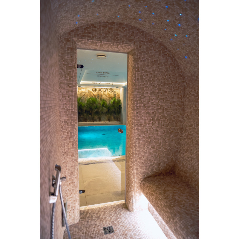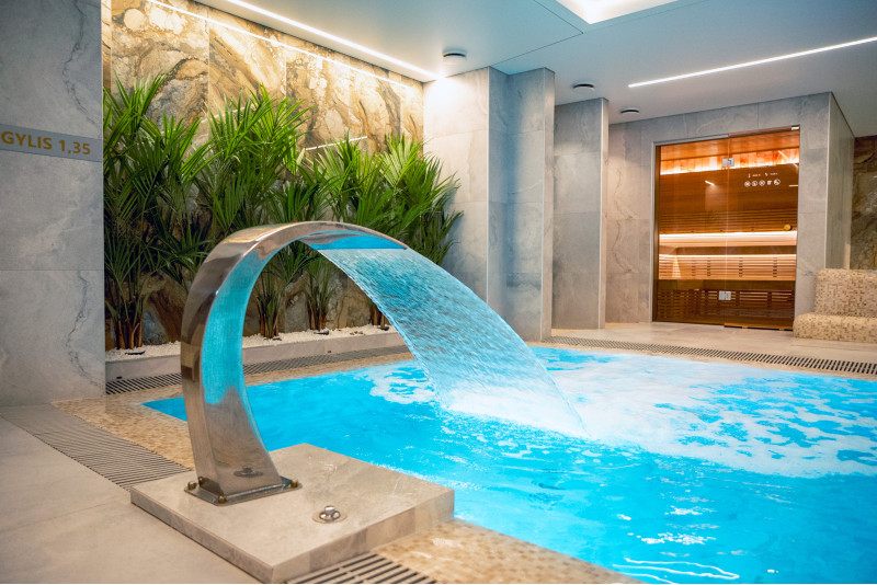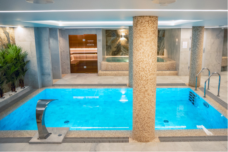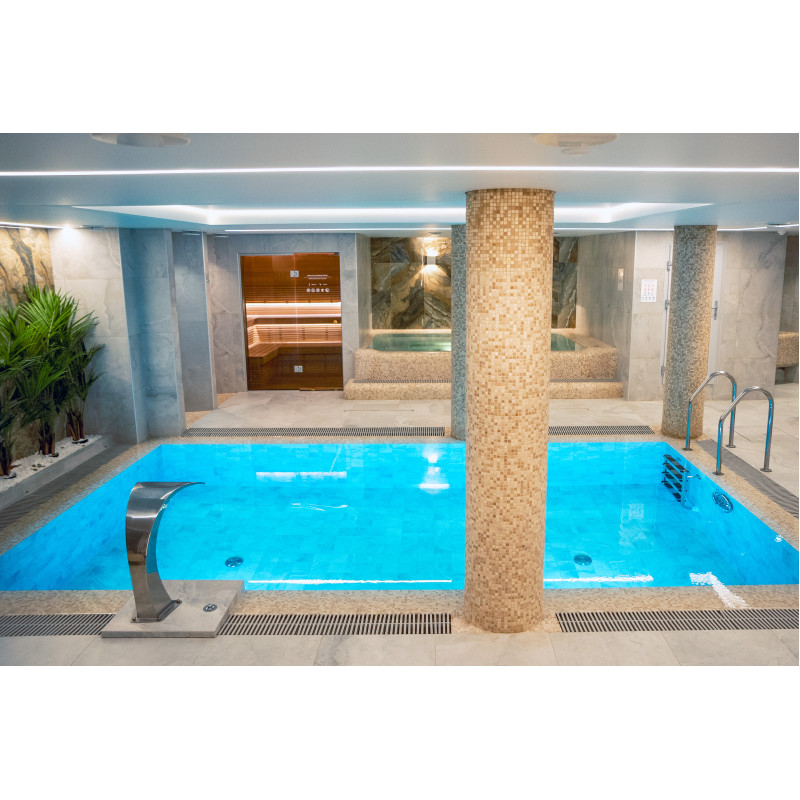 Комплексът включва парна баня, сауна, ледогенератор и басейн с масажна струя и джакузи.