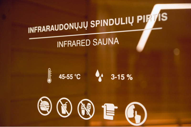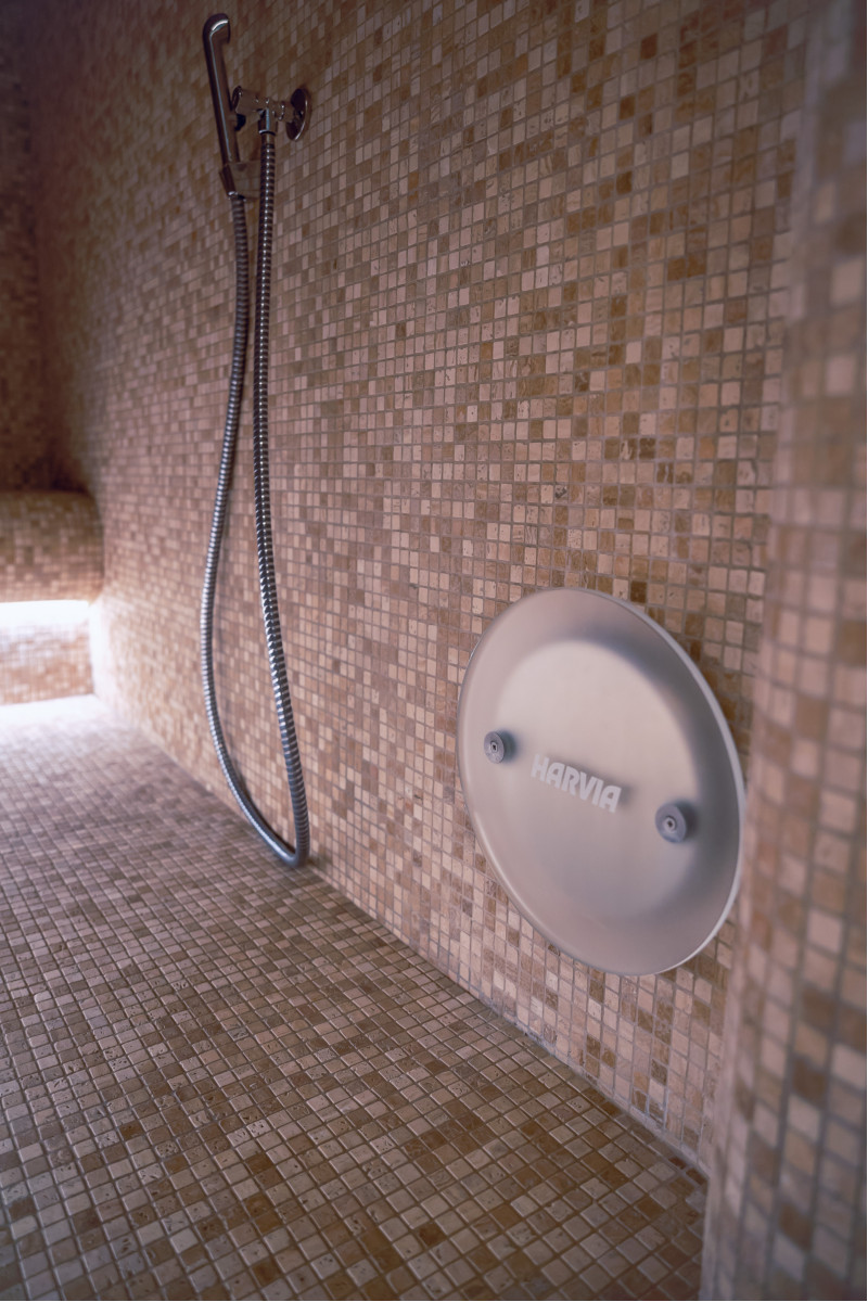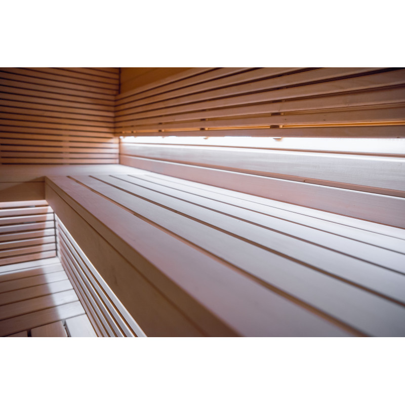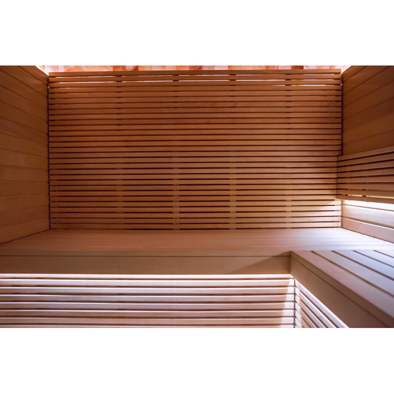 Под леглата са монтирани инфрачервени нагреватели EOS и карбонови елементи, управлявани от Harvia Xenio Combi CX36I.