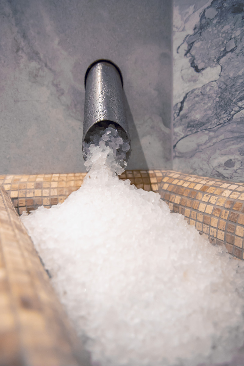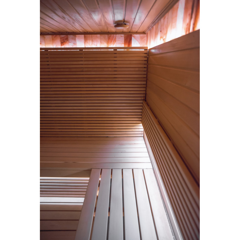 Често наричана една от най-чистите естествени соли, хималайската сол има много положителни ефекти върху здравето. Помага за прочистване на дихателните пътища, подобрява състоянието на кожата и подпомага детоксикацията на организма. Тухлите от хималайска сол се нагряват в сауната, освобождавайки отрицателни йони, които могат да неутрализират вредните влияния на околната среда като замърсяване или електромагнитно излъчване. Освен това солната терапия (халотерапия) помага за укрепване на имунната система и намалява стреса. Това е чудесно средство за тези, които страдат от алергии или респираторни проблеми.
